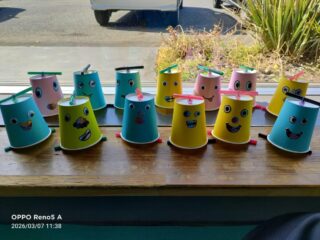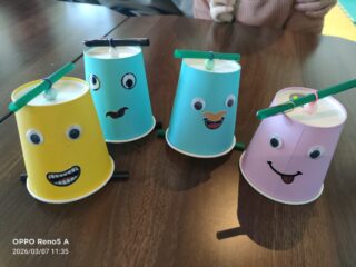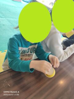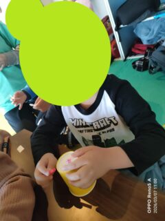 まず最初に紙コップを使った工作をしました!