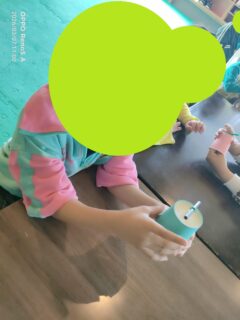 お子様達にはストローとクリップを差し込むところと顔パーツシールを貼ってもらいました!