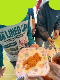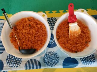 チキンライスは型に入れてひっくり返してとお子様達に好きなようにやってもらいました!