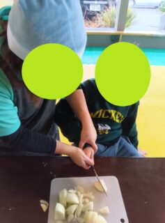 もちろん!包丁を使ってジャガイモ、ニンジン、玉ねぎも自分たちで切りました🔪🥔🥕🧅