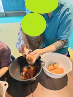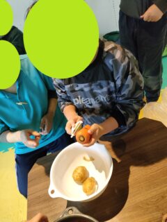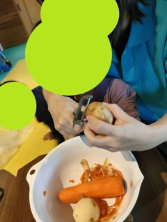 今回お子様達にジャガイモ、ニンジンの皮をむいてもらいました🥔🥕