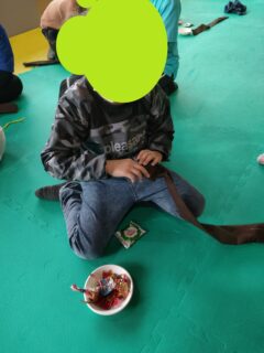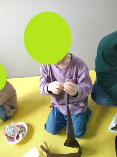 カレーが出来上がるまでの時間でみんなでリースを作りました♪