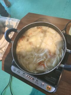 上手に切った後は、具材を入れて煮込みます!