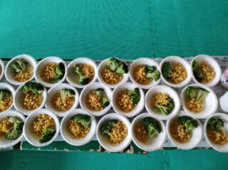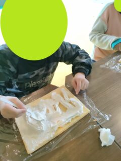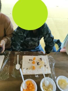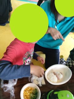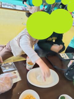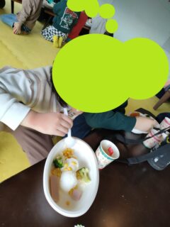 みんなでブロッコリー🥦やチーズ🧀などを使ってオリジナルの雪だるま⛄を作ります!