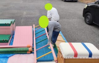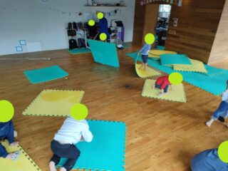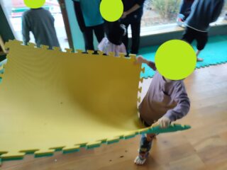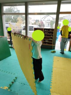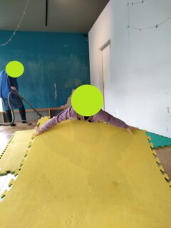 このあと昼食を食べて少し休憩をし、午後はマットを敷き詰めていく作業をしました!