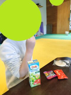 お掃除を頑張ってくれたお子様達におやつとジュースのご褒美を(❁´◡`❁)